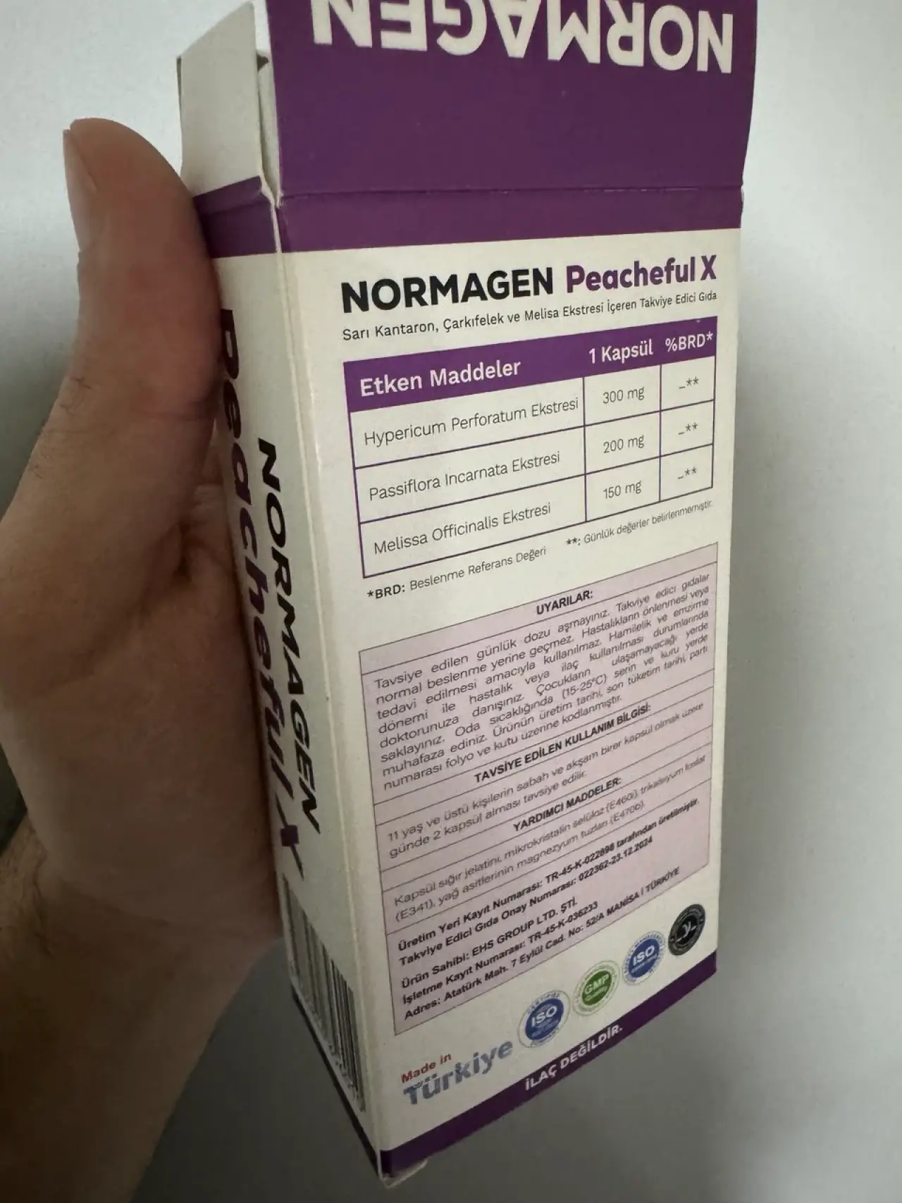 Bir takviye edici gıdanın güvenilirliği; üretim standartları, içerik şeffaflığı ve onay mekanizmalarıyla ölçülür. Normagen Peacheful, GMP (İyi Üretim Uygulamaları) ve ISO standartlarına sahip tesislerde üretilmektedir. Bu, ürünün üretim aşamasında hijyen ve kalite kontrol kurallarına sıkı sıkıya bağlı kalındığını gösterir.